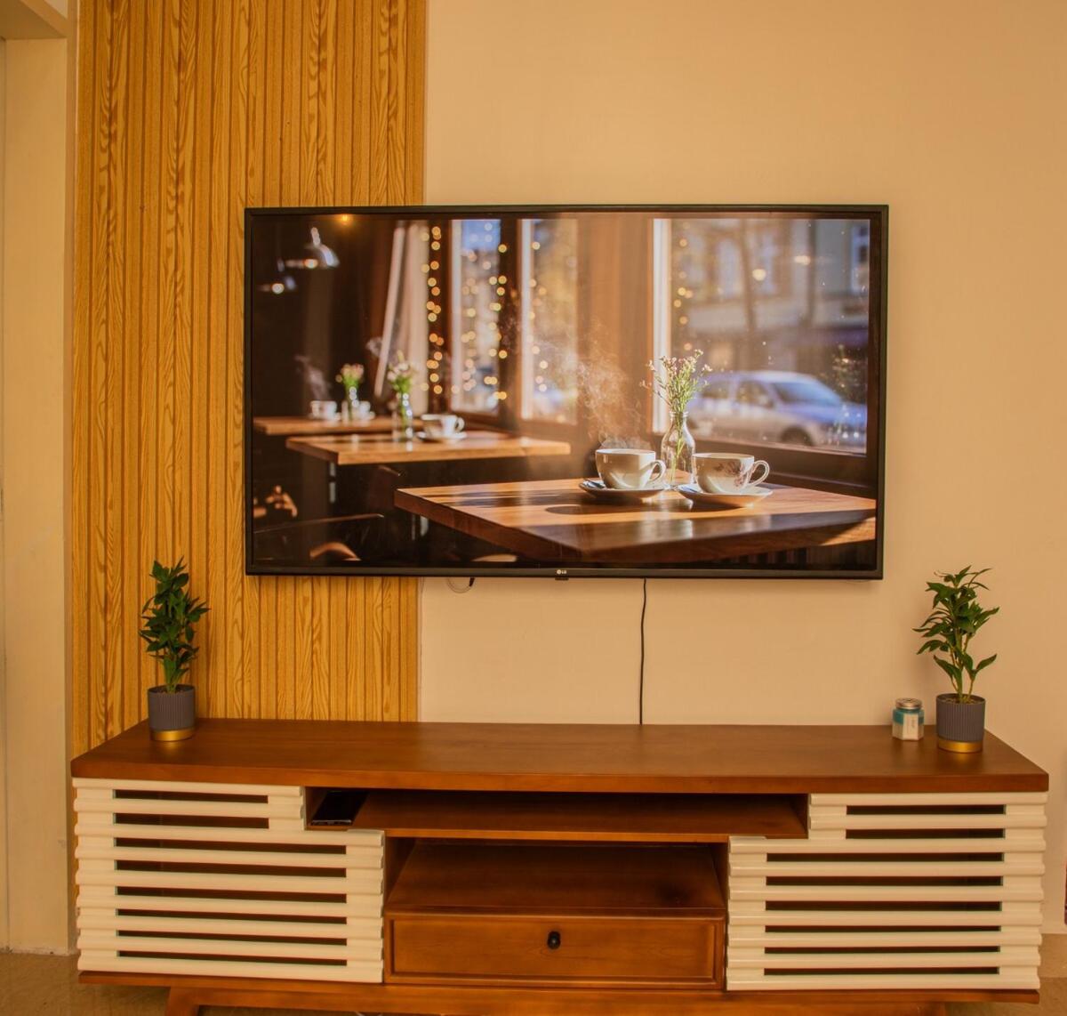 Two-Bedroom Apartment. This air-conditioned apartment comes with 1 living room, 1 separate bedroom and 2 bathrooms with a bath. The apartments kitchen, which features a refrigerator and a microwave, is available for cooking and storing food. This apartment has a dining area, an electric kettle, flat-screen TV, as well as chocolate for guests. The unit has 4 beds.